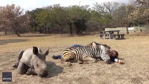 At first, Daisy stood still, her heavy head tilted curiously toward the striped newcomer. Modjadji, smaller and quicker, approached carefully, her nose twitching as she sniffed the rhinoâs face. For a moment, they simply looked at each other â two lost souls, both searching for warmth in a world that had taken too much, too soon.