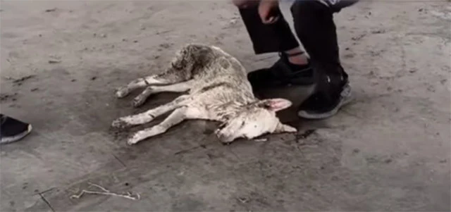 When rescuers received the call, they rushed to the scene — but what they found was worse than they could have imagined. The dog was barely conscious, his breathing shallow, his body cold. He had clearly been lying there for days, ignored and invisible to the world. His jaw hung awkwardly, twisted from a fracture, and his eyes, clouded with pain, flickered weakly as if unsure whether help had truly come.