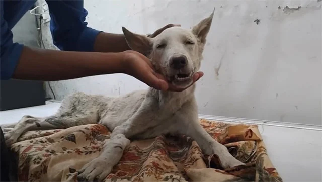 With each passing day, Fighter grew stronger. The vets continued his treatment, adjusting his diet and medication to support his recovery. He was soon able to sit up on his own, his eyes now bright and full of life. The street dog who once lay forgotten had become a symbol of courage — not just to his rescuers, but to everyone who heard his story.