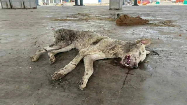 In the middle of a busy street, where people hurried past without looking, a small dog lay motionless on the pavement. His frail body was covered in wounds, his fur matted with blood and dirt, and flies swarmed mercilessly around him. Cars passed. Feet stepped around him. And still, no one stopped.